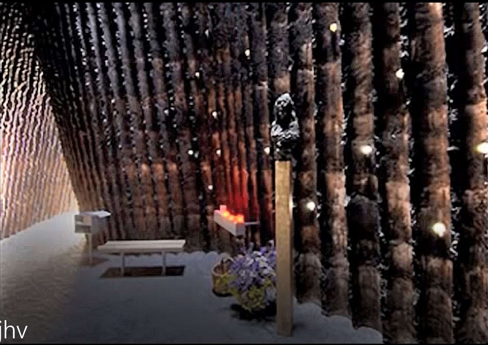 The interior conical structure is obtained by 112 tree trunks and the exterior is of 24 layers of thick concrete. Those 112 woods were the ones set to fire.